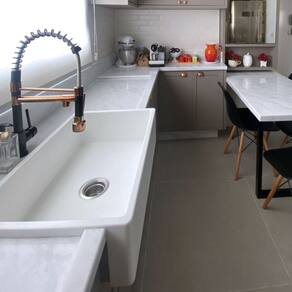 A Cuba Farm Sink Don Artesano é a opção mais sofisticada e prática para a sua cozinha! Feita à mão em Superfície Sólida Mineral, material atóxico e não poroso, é resistente à abrasão e não mancha, além de impedir a proliferação de microrganismos.