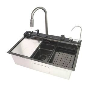 Esta cuba gourmet de cozinha em aço inox 304 é o ápice da modernidade e funcionalidade, projetada para quem valoriza praticidade e sofisticação. Com sistema automatizado toda comandada com botões, possui dois jatos de água em cascata para lavagem de louças e alimentos, adicionando um toque elegante ao design. Inclui um lavador de copos integrado para facilitar a limpeza de utensílios delicados, além de uma torneira com três tipos de jato, adaptando-se a diferentes necessidades de uso.