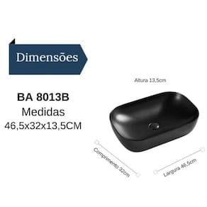 A louça sanitária tem a garantia de 5 anos contra defeitos de fabricação. Acompanha Flexível: Não Acompanha Manual de Instalação: Não Acompanha Sifão: Não Acompanha Torneira: Não Altura: 13.5 Ambiente Principal: Banheiro Antivandalismo: Não Comprimento: 46.5 Conforto PNE: Não Cor: Preto Cor do Produto: Preto Economizador: Não Itens Inclusos: 1 Cuba Largura: 32 Material Principal: Cerâmica Origem do Produto: Importado Peso: 9 Possui furação para torneira: Não Possui ladrão: Não Marca: Adamas Sanitários Ean: 7898972925116