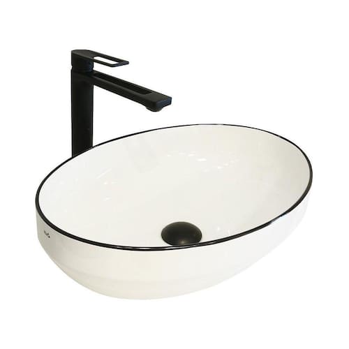 Marca - RENO Modelo - RC 180 Cor: Branca com detalhe em preto Acabamento: Semi Brilho Design: Oval Material: Cerâmica Produto Importado - Marca Nacional Garantia: 3 anos - contra defeito de fabricação