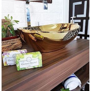 Cuba de Apoio Cerâmica Reno RC 8000.Novíssima cuba oval dourada, com bordas finas e muito elegante. Ela da um toque de requinte e sofisticação ao ambiente. Feita para torneiras altas ou de parede.Produto com Nota Fiscal e Garantia. Dimensões do produto nas fotos.Fotos ilustrativas, podem conter possíveis reflexos do ambiente Especificações do Produto:Marca - RENOModelo - RC 8000Cor: DouradaPeso: 12 kgDesign diferenciadoProduto Importado - Marca NacionalNosso diferencial - Funcionários dentro da fábrica fazendo o controle de qualidade de nossos produtosGarantia: 3 anos ATENÇÃO: Torneira e válvula não inclusos ao produto. Verificar o produto no recebimento do mesmo. É imprescindível a verificação antes da assinatura do canhoto de recebimento, pois pode haver algum dano no transporte. O transporte é de nossa responsabilidade e caso aconteça algum dano, enviaremos uma nova peça. A troca só será feita com a menção do cliente no conhecimento de transporte. Dúvidas a Banho&Casa estará à disposição para atendê-lo de segunda a sexta das 9:00 - 18:00 hrs.