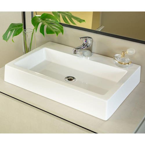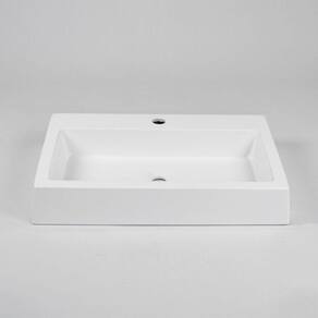 Cuba de apoio em mármore sintético, confeccionado através de processo de injeção de resina com granilha de pedra de mármore e revestimento de gelcoat de poliéster que dá brilho à cuba. O lavatório é um produto ecologicamente correto e econômico, não absorve a água e é mais leve que a pedra, proporcionando mais conforto na instalação e limpeza. Possui diâmetro do escoamento da água: 3,5cm e diâmetro do furo da torneira: 3,5cm