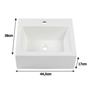 Confeccionada através de processo de injeção de resina com granilha de pedra de mármore e revestimento de gelcoat de poliéster que dá brilho a cuba. A Cuba é um produto ecologicamente correto e econômico, não absorve a água e é mais leve que a pedra proporcionando mais conforto na instalação e limpeza. Já possuí 02 furações de 35mm para instalação de ralo e torneira. Não acompanha válvula e torneira. Acompanha Flexível: Não Acompanha Manual de Instalação: Não Acompanha Sifão: Não Acompanha Torneira: Não Altura: 13,5 cm Ambiente Principal: Banheiro Comprimento: 44,5 cm Cor: Branco Cor do Produto: Branco Diâmetro do encaixe: 3,5 cm Diâmetro do furo: 35 mm Diâmetro para válvula: 35 mm Instruções de instalação: Somente por profissional hidráulico - recomenda-se conferir se há necessidade de utilizar silicone de vedação nas instalações para não haver vazamentos. Itens Inclusos: 1 Cuba e Manual de Instruções Largura: 38 cm Manual de Montagem e Instalação: https://cdn2.madeiramadeira.com.br/atributo/moveis-bosi/1000537-cuba.pdf Material Principal: Mármore Sintético Origem do Produto: Nacional Peso: 7,53 kg Possui furação para torneira: Sim Possui ladrão: Não Recomendações de Uso, Manutenção e Limpeza: Cuidados Básicos com o Produto: - Não utilizar esponjas abrasivas para limpar a cuba; - Não utilizar produtos químicos para a limpeza do lavatório, utilizar somente água e detergentes neutros. Válvula oculta: Não