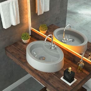 Estrutura em Mármore Sintético com acabamento em Gel Coat, semelhante a louça e responsável por criar mais resistência a peça.