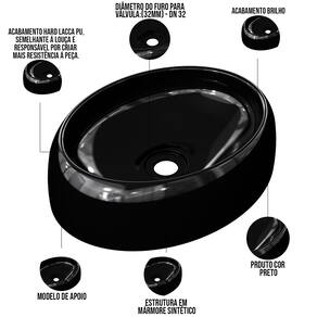 Estrutura em Mármore Sintético com acabamento Hard Lacca PU, semelhante a louça e responsável por criar mais resistência a peça.