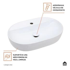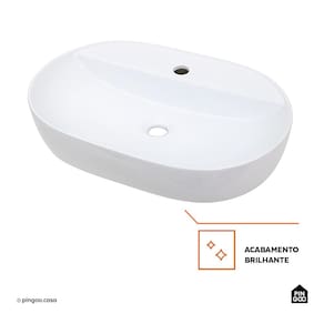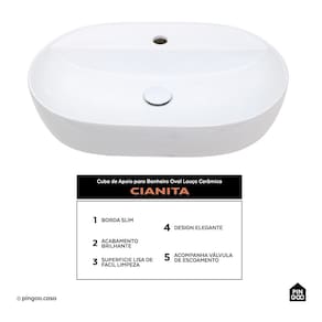 A Cuba de Apoio para Banheiro Oval Louça Cerâmica Cianita da Pingoo.casa - Branco une sofisticação e funcionalidade para banheiros e lavabos modernos.