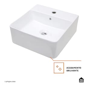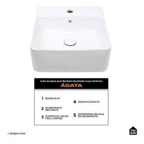 A Cuba de Apoio para Banheiro Quadrada Louça Cerâmica Ágata Pingoo.casa - Branco une sofisticação e funcionalidade para banheiros e lavabos modernos.