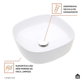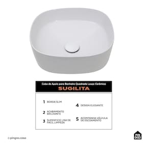A Cuba de Apoio para Banheiro Quadrada Louça Cerâmica Sugilita da Pingoo.casa - Branco combina modernidade e funcionalidade para compor banheiros e lavabos sofisticados.