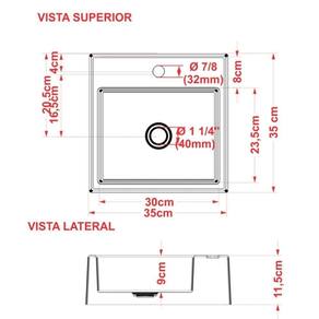 Furação da Cuba: Torneira: 7/8 (32mm) - Válvula: 1 1/4 (40mm).