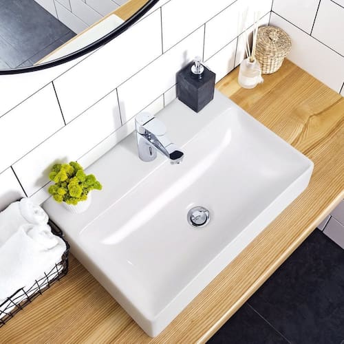 Cuba de Apoio ICA23 apresenta um design retangular moderno e funcional, com medidas de 49x37 cm, que a tornam ideal para banheiros de diferentes tamanhos. Sua borda reta e acabamento preciso conferem sofisticação e elegância ao ambiente, enquanto a mesa para metais oferece praticidade, permitindo a instalação de torneiras com mais conforto e versatilidade.