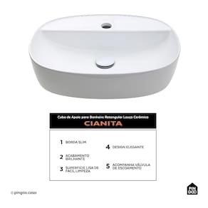 A Cuba de Apoio para Banheiro Retangular Louça Cerâmica Cianita da Pingoo.casa - Branco oferece sofisticação e praticidade para o seu banheiro ou lavabo.