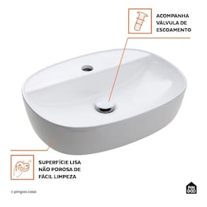 Conteúdo da embalagem : 1 Cuba de Apoio para Banheiro 1 Válvula de Escoamento Parafusos e Ganchos para fixação