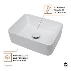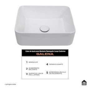 A Cuba de Apoio para Banheiro Retangular Louça Cerâmica Galena da Pingoo.casa - Branco é a escolha ideal para quem busca unir sofisticação e funcionalidade no banheiro ou lavabo. Com um design retangular em louça cerâmica, ela combina elegância e modernidade, adaptando-se facilmente a diferentes estilos de decoração e proporcionando um toque refinado ao ambiente.