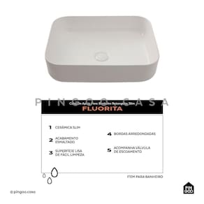 Marca: Pingoo.casa Medidas: Verificar imagens do anúncio Material Predominante: Cerâmica Acabamento: Esmaltado Aplicação: Apoio Posição da Válvula: Centralizada Furação da Torneira: Não se aplica Válvula Escape/Ladrão: Não Indicação: Banheiro ou Lavabo