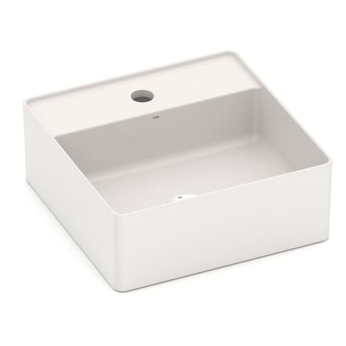 Cuba de apoio quadrada com mesa da Celite, é produzida com a tecnologia Titanium® em que é possível criar bordas finas, 30% mais resistentes e 40% mais leves do que as cubas convencionais