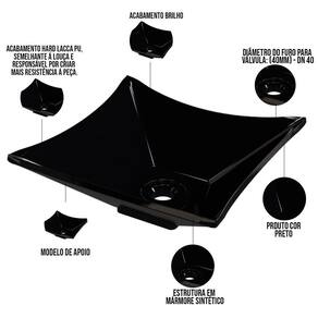 Cuba De Apoio Quadrada Lux Para Banheiro Lavabo C01 L30 Preto - Lyam Decor Seu banheiro de cara nova! Hoje, incrivelmente um dos locais da casa onde mais pedem decoração é o banheiro ou lavabo. Aqui apresentamos a você uma cuba elegante e de um escoamento de água excelente para proporcionar mais comodidade e versatilidade para os usuários do lavatório. Além de enriquecer o visual do seu banheiro, determina a funcionalidade do mesmo. Vale ressaltar que as torneiras mais indicadas para este tipo de cuba são as de parede ou de bica alta, e exige também uma bancada com espaço superior suficiente para abrigar a mesma, junto com os outros adornos de banheiro que você desejar. Ideal para fazer parte do seu sonho! Dimensões da Cuba (L x A x P) 29,8 x 11,5 x 29,8 cm Características: Estrutura em Mármore Sintético com acabamento Hard Lacca PU, semelhante a louça e responsável por criar mais resistência a peça. Acabamento Brilho. Furação da Cuba: Válvula Universal 11/4 (40mm). Formato: Quadrada. Modelo: Apoio Importante: O produto é enviado montado, requerendo apenas instalação por parte do cliente. Recomendação de Limpeza: Recomenda-se lavagem do produto com bucha apenas do lado amarelo e detergente neutro. Observações importantes: - Produto para uso residencial em ambiente interno, não devendo ficar exposto diretamente ao sol, calor e umidade excessivos. - Pode haver alguma diferença de tonalidade entre a imagem e o produto real, por conta do tratamento de imagens e a calibração de cores do seu monitor. - As imagens são meramente ilustrativas, não acompanham objetos de decoração e eletrônicos. - Ao receber a mercadoria, o cliente deve verificar as condições da embalagem, caso haja alguma não assine o de . - Montagem, desmontagem e outras instalações serão de responsabilidade do cliente. Não nos responsabilizamos, no ato da , por subir escadas/elevadores ou pelo por guincho em apartamentos. Eventuais despesas são de responsabilidade do comprador. - Confira as dimensões do produto e certifique-se de que passará normalmente por supostos elevadores, portas, escadas e/ou corredores de sua residência. NA