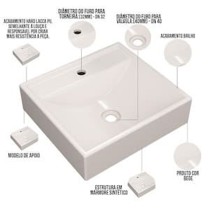 Cuba De Apoio Quadrada Para Banheiro Lavabo C01 Q39w Bege - Lyam Decor Seu banheiro de cara nova! Hoje, incrivelmente um dos locais da casa onde mais pedem decoração é o banheiro ou lavabo. Aqui apresentamos a você uma cuba elegante e de um escoamento de água excelente para proporcionar mais comodidade e versatilidade para os usuários do lavatório. Além de enriquecer o visual do seu banheiro, determina a funcionalidade do mesmo. Vale ressaltar que as torneiras mais indicadas para este tipo de cuba são as de parede ou de bica alta, e exige também uma bancada com espaço superior suficiente para abrigar a mesma, junto com os outros adornos de banheiro que você desejar. Ideal para fazer parte do seu sonho! Dimensões da Cuba (L x A x P) 40 x 10 x 37,5 cm Características: Estrutura em Mármore Sintético com acabamento Hard Lacca PU, semelhante a louça e responsável por criar mais resistência a peça. Acabamento Brilho. Furação da Cuba: Válvula Universal 7/8 (32mm) 11/4 (40mm). Formato: Quadrada. Modelo: Apoio. Importante: O produto é enviado montado, requerendo apenas instalação por parte do cliente. Recomendação de Limpeza: Recomenda-se lavagem do produto com bucha apenas do lado amarelo e detergente neutro. Observações importantes: - Produto para uso residencial em ambiente interno, não devendo ficar exposto diretamente ao sol, calor e umidade excessivos. - Pode haver alguma diferença de tonalidade entre a imagem e o produto real, por conta do tratamento de imagens e a calibração de cores do seu monitor. - As imagens são meramente ilustrativas, não acompanham objetos de decoração e eletrônicos. - Ao receber a mercadoria, o cliente deve verificar as condições da embalagem, caso haja alguma não assine o de . - Montagem, desmontagem e outras instalações serão de responsabilidade do cliente. Não nos responsabilizamos, no ato da , por subir escadas/elevadores ou pelo por guincho em apartamentos. Eventuais despesas são de responsabilidade do comprador. - Confira as dimensões do produto e certifique-se de que passará normalmente por supostos elevadores, portas, escadas e/ou corredores de sua residência. NA