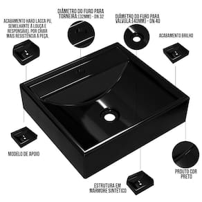 Cuba De Apoio Quadrada Para Banheiro Lavabo C01 Q39w Preto - Lyam Decor Seu banheiro de cara nova! Hoje, incrivelmente um dos locais da casa onde mais pedem decoração é o banheiro ou lavabo. Aqui apresentamos a você uma cuba elegante e de um escoamento de água excelente para proporcionar mais comodidade e versatilidade para os usuários do lavatório. Além de enriquecer o visual do seu banheiro, determina a funcionalidade do mesmo. Vale ressaltar que as torneiras mais indicadas para este tipo de cuba são as de parede ou de bica alta, e exige também uma bancada com espaço superior suficiente para abrigar a mesma, junto com os outros adornos de banheiro que você desejar. Ideal para fazer parte do seu sonho! Dimensões da Cuba (L x A x P) 40 x 10 x 37,5 cm Características: Estrutura em Mármore Sintético com acabamento Hard Lacca PU, semelhante a louça e responsável por criar mais resistência a peça. Acabamento Brilho. Furação da Cuba: Válvula Universal 7/8 (32mm) 11/4 (40mm). Formato: Quadrada. Modelo: Apoio. Importante: O produto é enviado montado, requerendo apenas instalação por parte do cliente. Recomendação de Limpeza: Recomenda-se lavagem do produto com bucha apenas do lado amarelo e detergente neutro. Observações importantes: - Produto para uso residencial em ambiente interno, não devendo ficar exposto diretamente ao sol, calor e umidade excessivos. - Pode haver alguma diferença de tonalidade entre a imagem e o produto real, por conta do tratamento de imagens e a calibração de cores do seu monitor. - As imagens são meramente ilustrativas, não acompanham objetos de decoração e eletrônicos. - Ao receber a mercadoria, o cliente deve verificar as condições da embalagem, caso haja alguma não assine o comprovante de recebimento. - Montagem, desmontagem e outras instalações serão de responsabilidade do cliente. Não nos responsabilizamos, no ato da , por subir escadas/elevadores ou pelo transporte por guincho em apartamentos. Eventuais despesas são de responsabilidade do comprador. - Confira as dimensões do produto e certifique-se de que passará normalmente por supostos elevadores, portas, escadas e/ou corredores de sua residência. NA