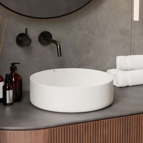 A Cuba Selene Don Artesano é a escolha ideal para banheiros que buscam delicadeza e sofisticação. Produzida em Superfície Sólida Mineral, oferece acabamento fosco impecável, alta resistência e fácil manutenção. Seu formato redondo e fluido remete à perfeição e ao ciclo da lua, evocando a serenidade da deusa Selene. Versátil e elegante, é perfeita para bancadas modernas que valorizam suavidade nas formas e design contemporâneo.