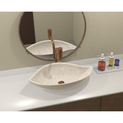 A Cuba Treviso lembra o formato de uma folha. As peças são fabricadas em louça e e são decorativas e sofisticadas. As peças possuem a borda fina, design diferenciado e efeitos marmorizados incriveis que remete a pedra