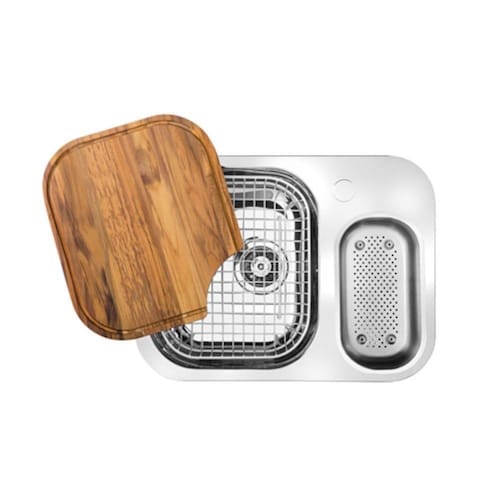 A Cuba de Embutir Docol Lift 54,5x40 cm em Aço Inox Alto Brilho com Acessórios com 2 Cubas é o item perfeito para sua cozinha. Sua estrutura é em aço inox com acabamento alto brilho, concedem à peça toda qualidade e versatilidade para para você não passar trabalho no dia a dia. Um item prático, com duas cuba, uma auxiliar e uma principal, e que ainda é super fácil de limpar.Linha ou Coleção - LiftComprimento - 59,5 cmLargura - 45 cmMedidas Internas (Comp. x Larg.) - 54,5x40 cmMedida(s) da(s) Cuba(s) (Comp. x Larg.) - 34x40X18 cm15,2x 27,2X13 cmAltura - 18 cmFuro para torneira - SimAcessórios Inclusos - 2 válvulas 4.1/2;1 Tampão para furo de torneira;1 Tábua de preparação em madeira;1 Cesto escorredor em inox;1 Cesto escorredor aramado.Material - Aço Inox 304Espessura - 0,8 mmAcabamento - Alto BrilhoAplicação - EmbutirInstalação - Por BaixoFormato - RetangularAcompanha válvula - SimPosicionamento da válvula - DescentralizadaFuração da válvula - 4.1/2"Escape/ladrão - NãoAcabamento da válvula - Luxo com pino metalAnti-ruído - SimAceita triturador - SimPeso - 6,00 kgMais Informações - Instalação: Por baixoCuba: Simples + AuxiliarMaterual: Aço Inox AISI 304Espessura: 0,8 mmAcabamento: Alto BrilhoProfundidade da cuba maior: 18 cm Profundidade da cuba menor: 13 cmFuro para torneira: Sim, 1Acompanha válvula 4.1/2Acompanha tampão furo de torneiraAcompanha tábua de preparaçãoAcompanha Cesto escorredor de inoxAcompanha Cesto escorredor aramado brancoRecomendações de Uso - Limpar a cuba com detergentes normais neutros.Usar somente esponja macia ou pano para lavar a pia.Esta peça contém bordas cortantes. Manusear com cuidado.Não usar ácido muriático, água sanitária ou qualquer outro solvente para lavar objetos na pia.Na reforma ou construção, proteger a cuba para não deixar sobre a mesma pó de cimento ou gesso.Enxaguar e secar bem a peça após o uso.Nunca deixar objetos metálicos sobre a peça por períodos muito longos, para evitar a corrosão.Marca - DocolGarantia do fabricante - 12 meses para vícios ou defeitos de fabricaçãoAviso sobre o produto - Imagem Meramente IlustrativaEAN - 7891461015770
