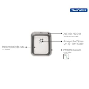 Suas tarefas na cozinha ficarão muito mais práticas com a Cuba de Embutir Tramontina Dora 34 BL R6 em Aço Inox Acetinado com Válvula 34x40 cm. Ela vai adicionar muita facilidade à sua vida e vai se adaptar perfeitamente ao espaço que você precisa. Ela é produzida em aço inox com acabamento acetinado, tem profundidade de 185 milímetros e raio de 60 mm, características que a tornam muito fácil de limpar e muito mais resistente. Ela possui ainda cantos arredondados que agregam muito mais beleza e estilo à sua cozinha. Vem acompanhada de válvula de 4 1/2'' de diâmetro com escape, o que garante uma instalação muito mais fácil. Com a Tramontina, você tem o melhor para sua cozinha!