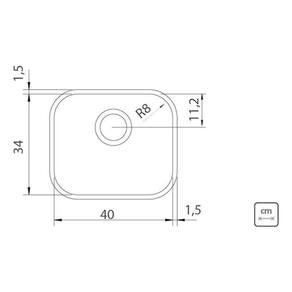 Produto: Cuba com bordas lisas para instalação por baixo da bancada e 17 cm de profundidade. Opcionalmente são oferecidos acessórios como, tábua em madeira, grade aramada, bandeja perfurada e cesta quadrada.