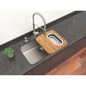 Aço Inox AISI 304 Instalação: Embutir Acabamento acetinado 0,8 mm de espessura Acompanha: - válvula de Ø 4 1/2" - tábua de madeira - cesto coador - dosador de sabão Profundidade da cuba 200 mm Capacidade: 50 L Manta adesiva anti-ruído: sim Todas as imagens são meramente ilustrativas.