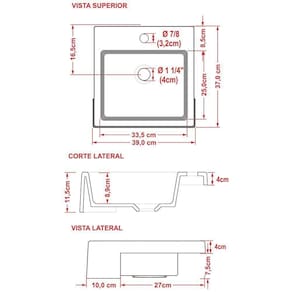 Furação da Cuba: Acabamento Torneira: 7/8 (32mm) - Válvula: 1 1/4 (40mm)