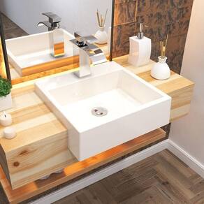 Estrutura em Mármore Sintético com acabamento em Gel Coat, semelhante a louça e responsável por criar mais resistência a peça.