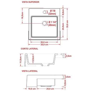 Furação da Cuba: Acabamento Torneira: 7/8 (32mm) - Válvula: 1 1/4 (40mm)