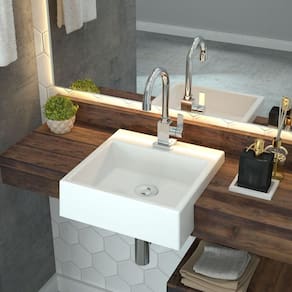 Estrutura em Mármore Sintético com acabamento em Gel Coat, semelhante a louça e responsável por criar mais resistência a peça.