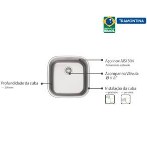 Para manter o brilho da sua cuba, recomendamos o uso da pasta para polir e remover manchas em superfícies de aço inoxidável "Tramontina".