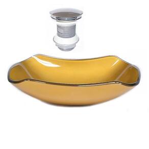 Cuba de vidro abaulada 45cm dourado real + valvula click as nossas cubas de vidro são ideais para projetos de decoração em banheiros com alto padrão e bom gosto, pois proporcionam um efeito moderno e único ao ambiente,são instaladas sobre a bancada e por isso realçam com destaque o acabamento do seu banheiro, sem contar a eficiência e praticidade que se leva para a sua casa. O vidro é pintados com tinta de alta performance, o que lhe garante a permanência da cor. Dados técnicos formato: retangular abaulada material: vidro instalação: apoio ou sobrepor dimensões: 45x29x14cm comprimento x profundidade x altura espessura: 10mm