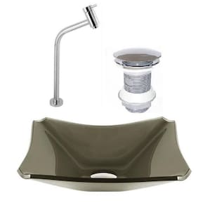 Cuba de vidro retangular chanfrada 37cm ouro envelhecido + válvula click + torneira as nossas cubas de vidro são ideais para projetos de decoração em banheiros com alto padrão e bom gosto, pois proporcionam um efeito moderno e único ao ambiente, são instaladas sobre a bancada e por isso realçam com destaque o acabamento do seu banheiro, sem contar a eficiência e praticidade que se leva para a sua casa. O vidro é pintados com tinta de alta performance o que lhe garante a permanência da cor. Na compra deste super combo 3 em 1, você compra de uma só vez, a cuba, válvula click e a torneira de metal. Itens incluso: 01 cuba de vidro retangular chanfrada 37cm; 01 válvula click redonda; 01 torneira de metal cromada. Mais fácil, mais rápido e mais barato. Dados técnicos da cuba formato: retangular chanfrada material: vidro instalação: apoio ou sobrepor dimensões: 37x32x10 comprimento x profundidade x altura espessura: 10mm