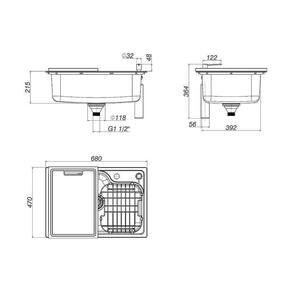 Características Gerais do Produto: Linha: Facile Cor: Aço Inox Escovado Material: Aço Inox Acompanha Válvula: Sim Com Furo para Dosador: Sim Com Furo para Torneira: Sim Dimensões AxLxP mm : 215x680x470 Instalação: Embutir / Sobrepor Manta adesiva anti-ruído: Sim Observação: Válvula compatível com triturador Posicionamento da Válvula: Não Centralizada Acompanha o produto: 1 Cuba 1 Tábua 1 Dosador de Sabão de 500ml 1 Cesto Aramado 1 Válvula : 10 anos junto ao fabricante Marca: Não Informado