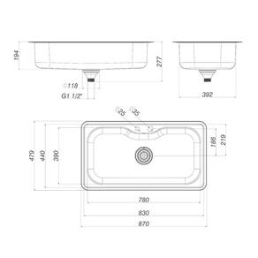 Dimensões AxLxP (mm): 194x870x479