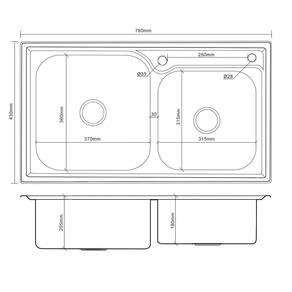 Material Predominante: Aço inoxidável 201 Espessura: 3 mm externo e 1mm interno Acabamento: Nano Tecnologia Medidas internas cuba grande: 36x37x20 cm Medidas internas cuba pequena:31x31x18 cm Medidas externas: 43x78x20 cm Aplicação: Embutir ou Sobrepor Posição da Válvula: Centralizada Furação da Válvula: 4.1/2 Válvula Escape/Ladrão: Sim Indicação: Cozinha, Ilha, Área Gourmet Aceita Triturador: Sim Anti-ruído: Sim Fundo e laterais Acompanha Acessórios: Sim Sifão: Sim