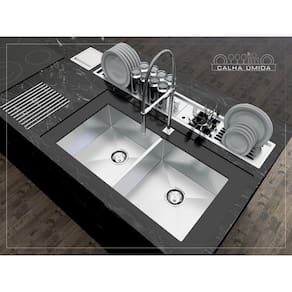 Cuba gourmet de embutir; Possibilidade de instalar triturador na mesma furação da válvula; Cuba ampla e versátil; Possui Anti ruído (aplicação de PAD especial na parte inferior e lateral externa da cuba, essa aplicação reduz o som causado pelo contato da água na cuba).