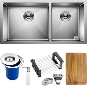 Cuba Dupla Quadrada Inox 304 Cozinha Pia Embutir Sobrepor Gourmet 8840 Premium Assimétrica com Lixeira de Embutir 5L e Acessórios