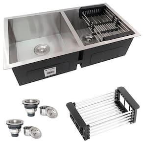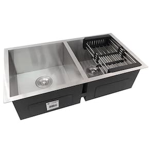 Cuba Dupla Quadrada Inox 304 Gourmet 8040 com Acessórios - EC244 Cuba Dupla Quadrada Inox 304 Cozinha Pia Embutir Sobrepor Gourmet 8040 Premium com Acessórios A Cuba Inox Quadrada 8040 Gourmet é a escolha certa para proporcionar elegância e modernidade ao projeto de sua cozinha.É fabricada em Aço Inox 304 e possui acabamento escovado, apresentando grande durabilidade e beleza.Acompanha uma válvulas Premium de 4 1/2 polegadas de diâmetro com cesto removível para limpeza. O design reto com raio zero é uma tendência de design para cubas gourmet e permite o melhor aproveitamento da cuba além de apresentar uma estética moderna e minimalista. A Cuba Inox Quadrada 8040 pode ser instalada tanto embutida como por cima da bancada, pois possui as abas com acabamento escovado assim como na parte interna da cuba. Características Instalação: Embutir ou SobreporCuba: Quadrada GourmetMaterial: Aço Inox AISI 304 (o melhor tipo de aço contra corrosão)Espessura: 0,8 mm + 2.0mm nas abas de instalação para maior resistênciaAcabamento: Escovado circular com brilhoDimensões Externas: 78 x 43 cmDimensões Internas: 35 x 38 cm + 35 x 38 cmProfundidade da cuba: 20 cmPossui PADs de borracha na parte inferior e nas laterais para minimizar o ruído durante o usoPossui revestimento anti-ruído em toda a superfície interior da cuba Acessório inclusos: - 2 Válvulas 4 1/2 Premium- 1 Cesto Escorredor Ajustável em Aço Inox