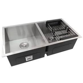 Cuba Dupla Quadrada Inox 304 Gourmet 8040 com Acessórios - EC244 Cuba Dupla Quadrada Inox 304 Cozinha Pia Embutir Sobrepor Gourmet 8040 Premium com Acessórios A Cuba Inox Quadrada 8040 Gourmet é a escolha certa para proporcionar elegância e modernidade ao projeto de sua cozinha.É fabricada em Aço Inox 304 e possui acabamento escovado, apresentando grande durabilidade e beleza.Acompanha uma válvulas Premium de 4 1/2 polegadas de diâmetro com cesto removível para limpeza. O design reto com raio zero é uma tendência de design para cubas gourmet e permite o melhor aproveitamento da cuba além de apresentar uma estética moderna e minimalista. A Cuba Inox Quadrada 8040 pode ser instalada tanto embutida como por cima da bancada, pois possui as abas com acabamento escovado assim como na parte interna da cuba. Características Instalação: Embutir ou SobreporCuba: Quadrada GourmetMaterial: Aço Inox AISI 304 o melhor tipo de aço contra corrosão Espessura: 0,8 mm + 2.0mm nas abas de instalação para maior resistênciaAcabamento: Escovado circular com brilhoDimensões Externas: 78 x 43 cmDimensões Internas: 35 x 38 cm + 35 x 38 cmProfundidade da cuba: 20 cmPossui PADs de borracha na parte inferior e nas laterais para minimizar o ruído durante o usoPossui revestimento anti-ruído em toda a superfície interior da cuba Acessório inclusos: - 2 Válvulas 4 1/2 Premium- 1 Cesto Escorredor Ajustável em Aço Inox