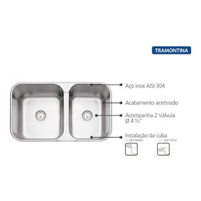A Cuba Tramontina Isis 2C 34-28 BS fabricada em Aço Inox com 0,7 mm de espessura e acabamento acetinado, é ideal para todos os tipos de cozinha por oferecer uma boa otimização dos espaços sem abrir mão das vantagens de uma cuba dupla. São 14 cm de profundidade por cuba, tamanho suficiente para manusear as louças confortavelmente. A instalação pode ser realizada por cima ou por baixo da bancada e a cuba é compatível com acessórios que podem facilitar ainda mais o seu dia a dia.