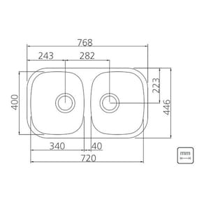 Aço Inox AISI 304 com 0,7 mm de espessura e acabamento alto brilho.