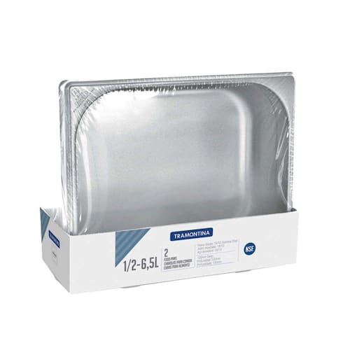 - Totalmente feita de aço inox, por isso não solta nenhum resíduo nos alimentos, mantendo-os saudáveis. - Altamente durável mantém suas características originais, preservando a beleza, a higiene e a durabilidade do material. - Cuba com paredes laterais com rebaixamento interno para facilitar o empilhamento. - Cantos internos arredondados e mais amplos para ajudar na limpeza e no recolhimento dos alimentos. - A linha de cubas gastronômicas Tramontina está de acordo com todos os módulos dimensionais descritos na norma europeia EN 631. Orientações Material: aço inox.Capacidade: 6,5l.Profundidade: 100mm.Sem alças. Observações Use apenas sabão ou detergente e uma esponja macia. Outros tipos de produto como palha de aço, poderão riscar ou prejudicar o brilho da peça. Enxágue cada item a fim de remover totalmente os resíduos dos produtos de limpeza, que, por serem abrasivos, podem danificar o inox. Sempre que possível, use água quente, pois renova o brilho da peça. Após a lavagem, enxugue imediatamente a peça, caso contrário, as substâncias químicas da água (cloro) poderão causar manchas. Evite atrito entre as peças durante o processo de lavagem e no armazenamento, para mantê-la sem riscos. Evite o contato do produto com superfícies quentes, pois elas provocam a descoloração do material. Não guarde a peça em locais úmidos. A umidade também provoca manchas. Características Gerais EAN13 7891116055434 DUN14 17891116055431 NCM 7323.93.00 Peso Líquido 1,3200 kg. Peso Bruto 1,5200 kg. Metragem 0,012820 m³. Dimensões Embalagem (Compr. X Larg. X Alt.) 332x 270x 143 mm. Dimensões Produto (Compr. X Larg. X Alt.) 325x 265x 100 mm.