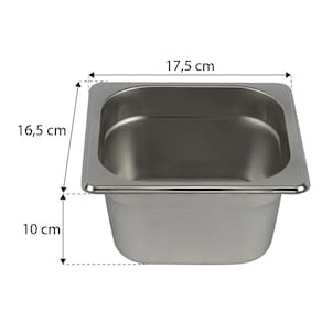 Ela é compatível com carrinhos de serviço ou rechauds? Sim, o tamanho GN 1/6 é padrão internacional, compatível com diversos equipamentos gastronômicos.