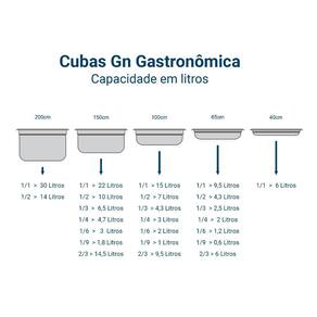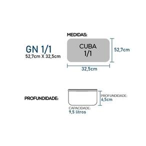 As cubas gastronômicas reúnem todas as características necessárias para melhorar a funcionalidade de sua cozinha profissional. Fabricadas em aço inox, oferecem resistência, beleza e praticidade. Desenvolvidas de acordo com os módulos dimensionais descritos na norma europeia EN 631, as GNs permitem total flexibilidade na montagem dos recipientes. O sistema de cubas gastronômicas possui como "Modelo Base" a cuba GN 1/1 com dimensões externas de 530x325mm. Os demais modelos de cubas gastronômicas resultam da divisão do Modelo Base originando as seguintes divisões/denominações: 1/2; 1/3; 1/4; 1/6; 1/9 e 2/3.