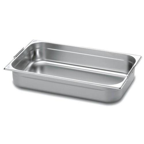 Cuba Tramontina 2/1 em Aço Inox com Alças Móveis Profundidade 100 mm - Aço 304 Totalmente feita de aço inox, por isso não solta nenhum resíduo nos alimentos, mantendo-os saudáveis. Altamente durável mantém suas características originais, preservando a beleza, a higiene e a durabilidade do material. Cuba com paredes laterais com rebaixamento interno para facilitar o empilhamento. Cantos internos arredondados e mais amplos para ajudar na limpeza e no recolhimento dos alimentos. A linha de cubas gastronômicas Tramontina está de acordo com todos os módulos dimensionais descritos na norma europeia EN 631.Material: aço inox.Capacidade: 29,50l.Profundidade: 100mm.Aço 304 Com alças móveis. Recomendações Use apenas sabão ou detergente e uma esponja macia. Outros tipos de produto como palha de aço, poderão riscar ou prejudicar o brilho da peça. Enxágue cada item a fim de remover totalmente os resíduos dos produtos de limpeza, que, por serem abrasivos, podem danificar o inox. Sempre que possível, use água quente, pois renova o brilho da peça. Após a lavagem, enxugue imediatamente a peça, caso contrário, as substâncias químicas da água (cloro) poderão causar manchas. Evite atrito entre as peças durante o processo de lavagem e no armazenamento, para mantê-la sem riscos. Evite o contato do produto com superfícies quentes, pois elas provocam a descoloração do material. Não guarde a peça em locais úmidos. A umidade também provoca manchas.