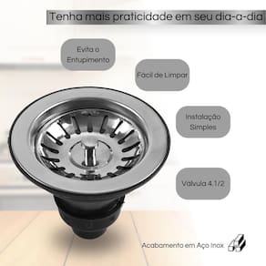 Destaque ainda para os acessórios que acompanham a cuba e elevam a praticidade e estilo na sua cozinha. O dosador de sabão com capacidade de 300ml e cesto escorredor facilita a lavagem e enxague das louças, enquanto a válvula 4 é compatível com diferentes modelos de trituradores, garantindo mais versatilidade para sua área .