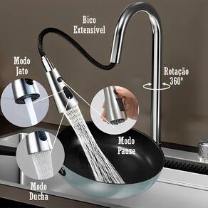 • Lavador de Copos Automático – Jatos potentes eliminam resíduos instantaneamente, garantindo limpeza rápida e eficiente. • Torneira Extensível com Jato e Ducha – Versatilidade total para diferentes tipos de limpeza, adaptando-se às suas necessidades. • Saída de Água Cascata – Um toque de sofisticação com fluxo contínuo e elegante, elevando o design da sua cozinha. • Acionador Monocomando com Misturador – Controle preciso da temperatura da água para maior conforto e conveniência. • Dispenser Integrado de Detergente – Organização e praticidade ao alcance das mãos. • Tábua, bacia de lavagem e Escorredor de Legumes Encaixáveis – Acessórios projetados para otimizar espaço e agilizar o preparo dos alimentos.